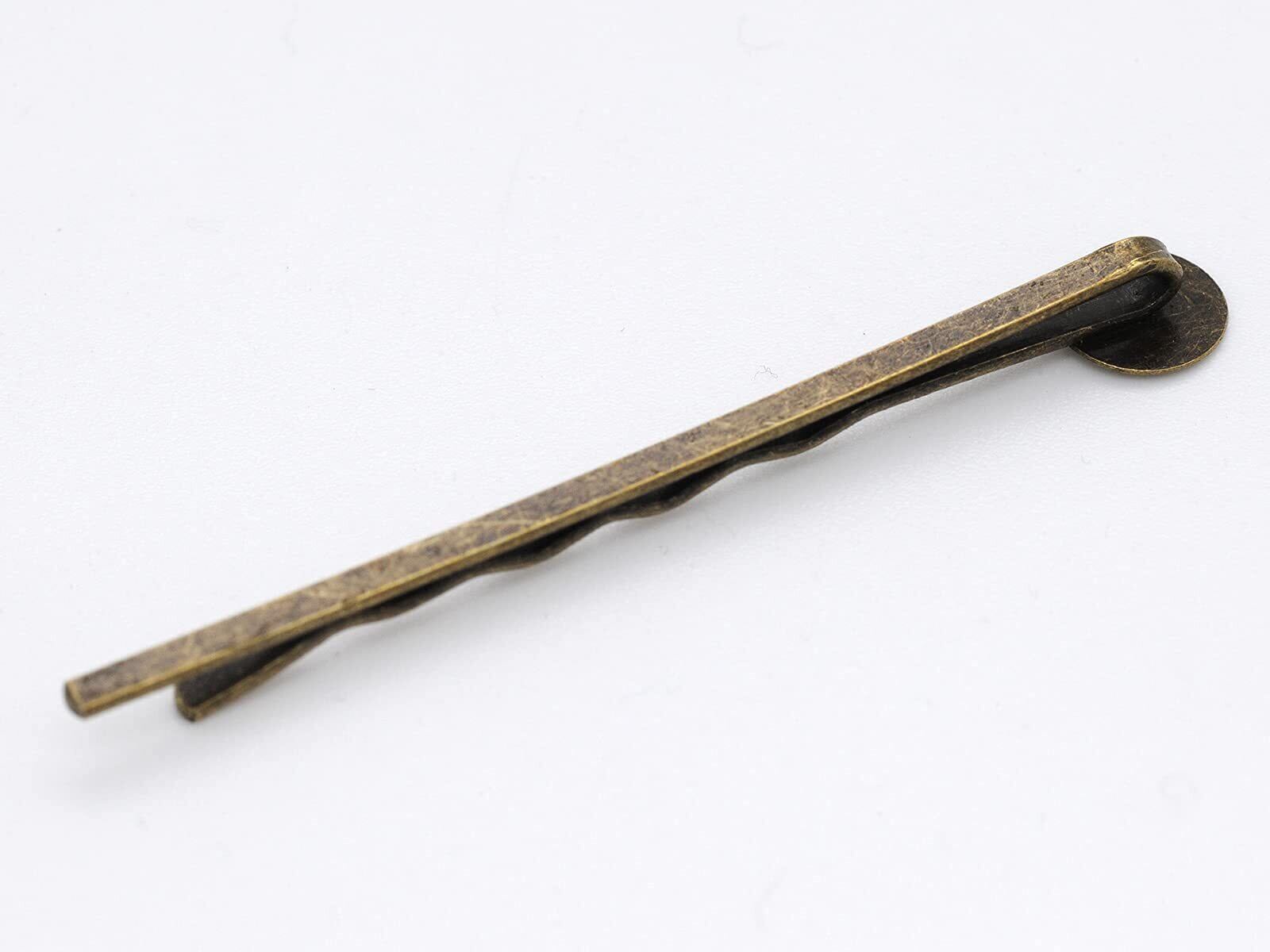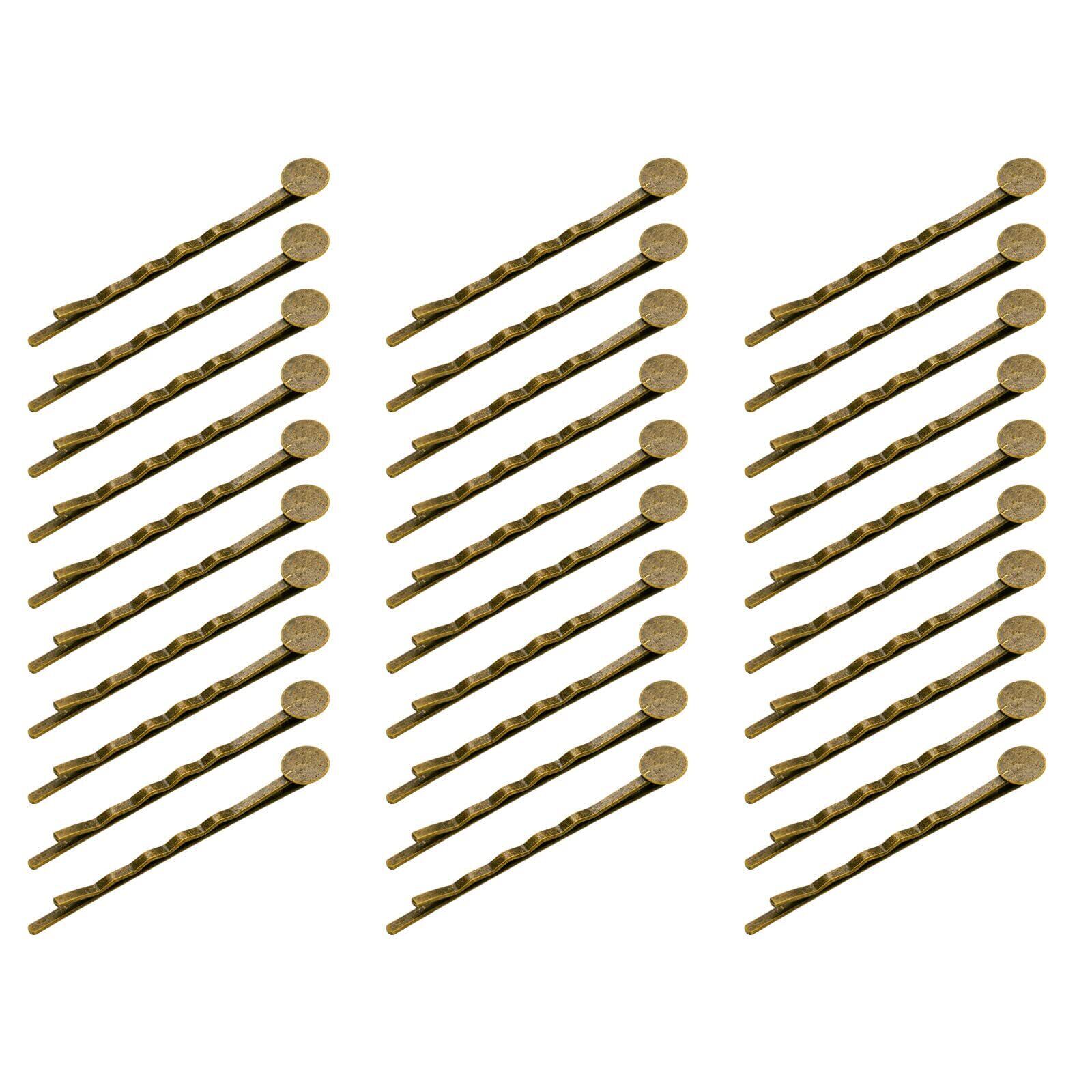 TSUKURIRO ヘアピン ハンドメイド用 8mm 丸 台座 付き 30個 セット 髪留め 髪飾り 手作り 材料 素材 DIY ヘア アクセサリー パーツ (アンティークゴールド)
