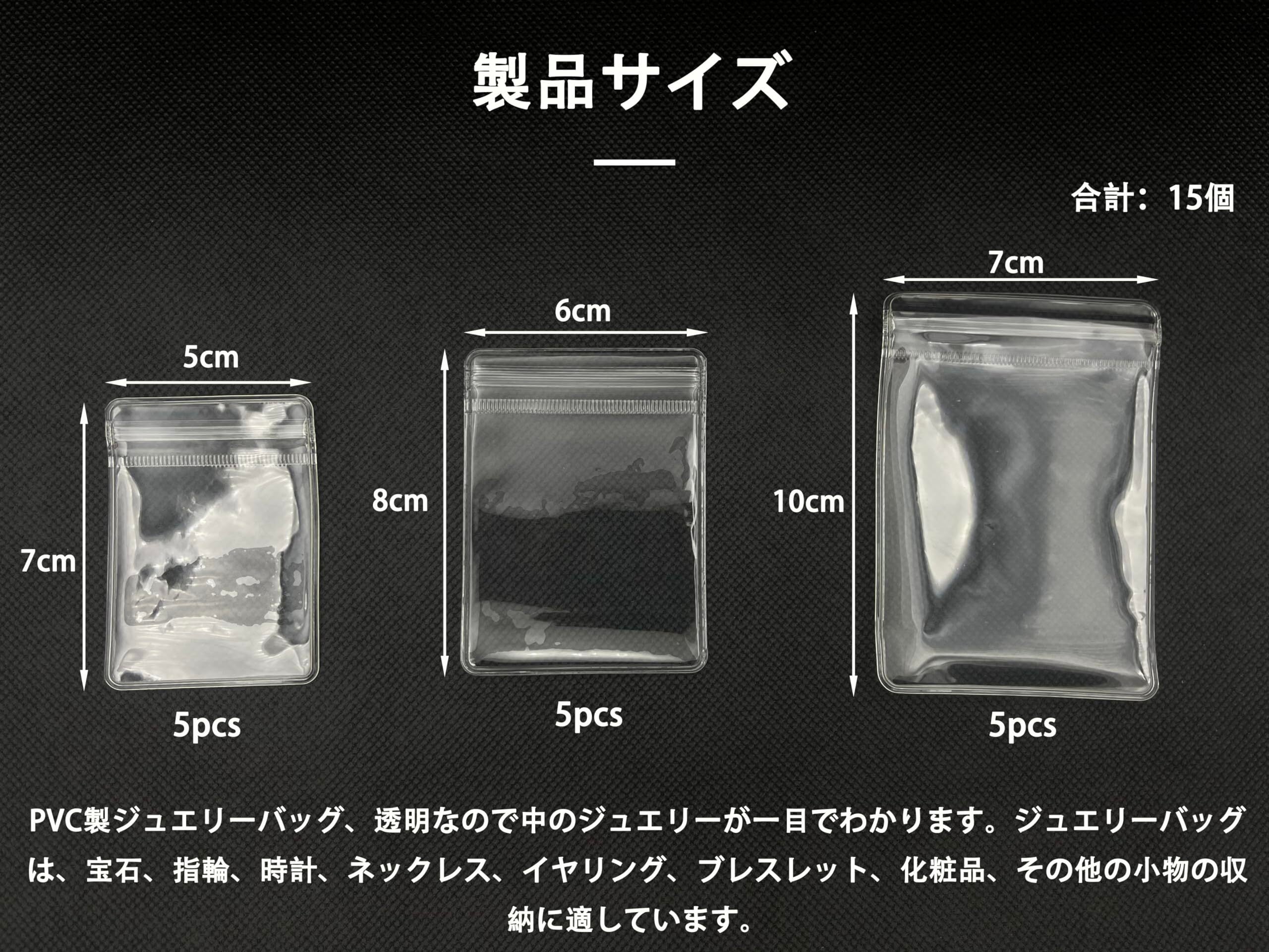 PVCジュエリーバッグ15個セット | 透明・耐湿・耐久性 | ハンドメイド材料やアクセサリーの収納に最適 | 5*7cm, 6*8cm, 7*10cm (3サイズあり) | ポリ袋 小・ジップロック・ビニール袋 厚手、ジップロック 袋 ,ジュエリーバッグ,ビニール袋 小 | allstore1