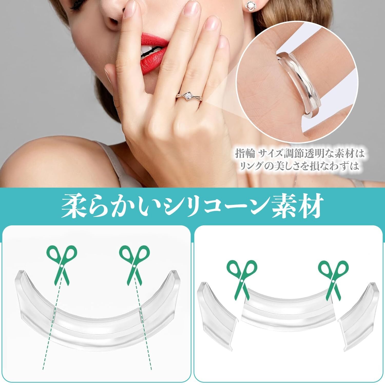 指輪 サイズ調整 リングアジャスター 12点セット 透明 指輪 ズレ防止 リサイズスペーサー 着脱簡単 脱落防止 滑り止め 男女兼用 DIY サイズ調整